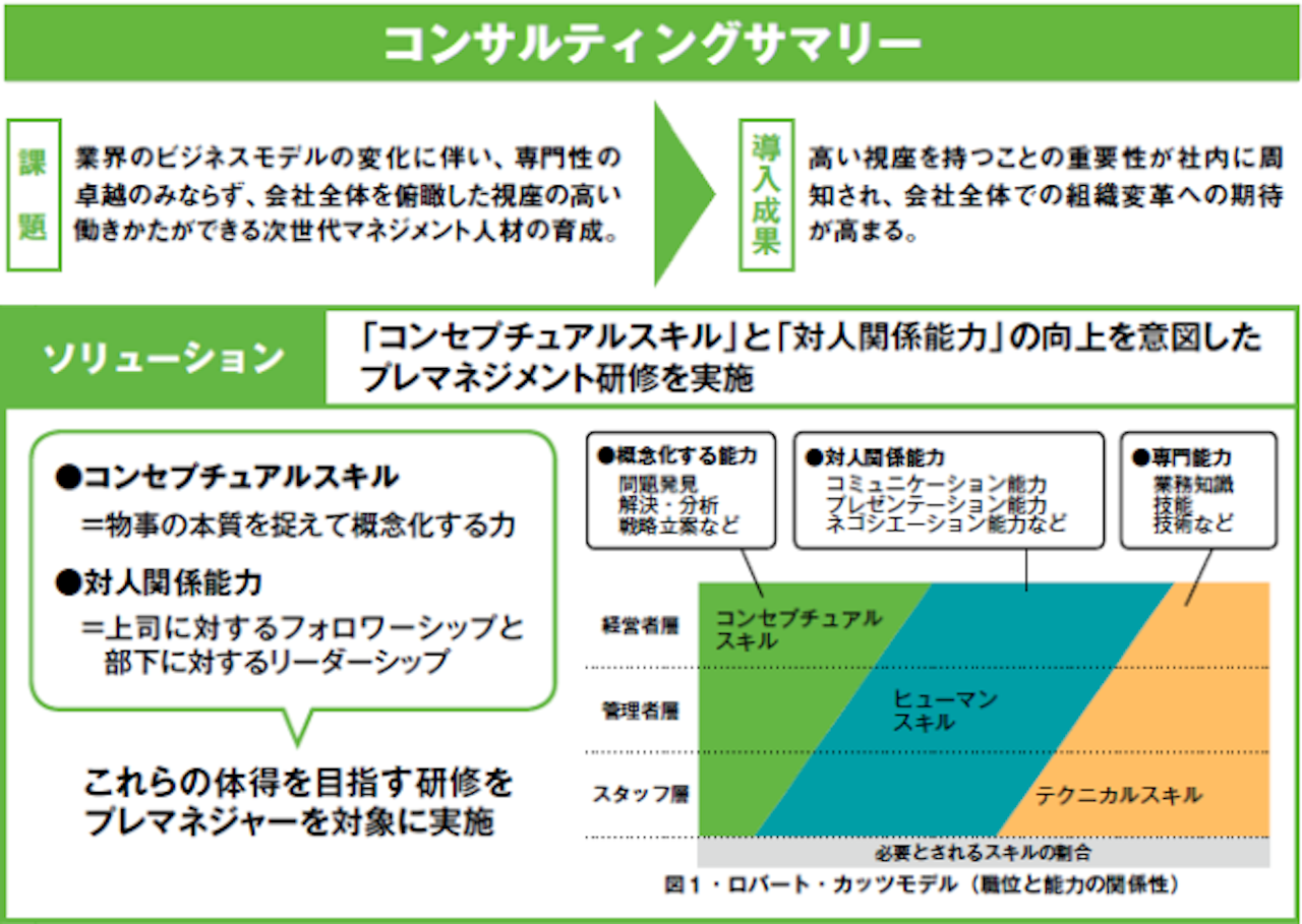 カッツモデルに表されるように、この二つは管理職に欠かせない能力であり、その提案は我々にとって非常に合点のいくものでした。