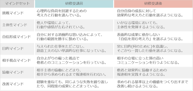 “理想的なスターター”になるためのマインドセットを7つに分類し、研修受講を通した変化を促進します。