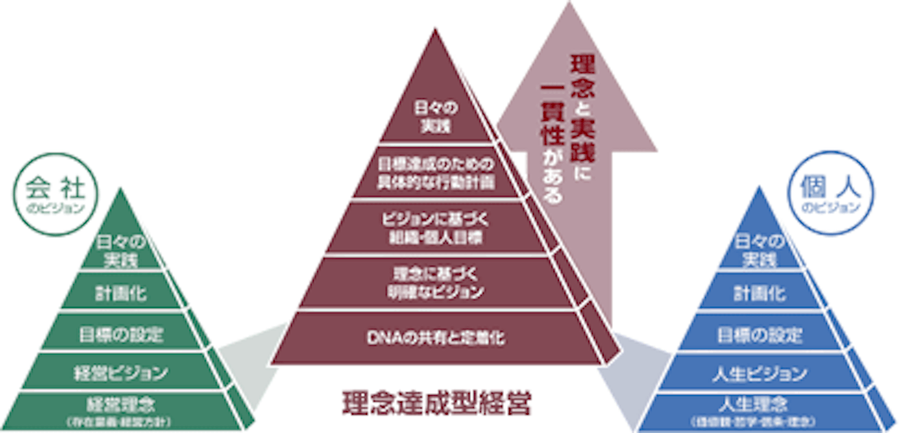 理念達成型経営を目指すために考えなければならないのが、組織とそこで働く社員との関係性です。売上目標を達成しても、そこに社員がついて来なければ長期的な発展は期待できません。アチーブメントHRソリューションズでは、「経営理念の実現」と「社員の自己実現」がイコールとなり、社員が理念実現に向けて内発的に動機づけられている組織状態を目指して、組織開発コンサルティングを提供しています。