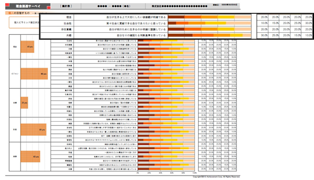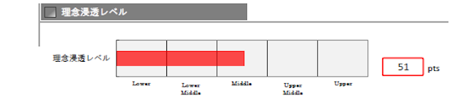 理念浸透サーベイでは、「理念浸透レベル」が数値として表れ、 一目で組織の状態を「見える化」することができます。