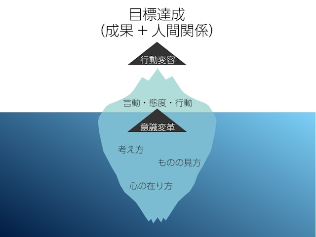 組織の成果や人間関係は一人ひとりの行動の結果ですが、行動に影響を与えているのは、ものの見方・考え方(思考傾向)や在り方(習慣)といった「意識」の領域です。意識の変革なくして、行動の本質的な変容は困難だからこそ、本人が無自覚な「意識」に影響を与える社員研修を企画設計しています。